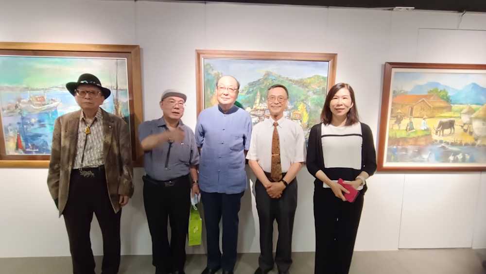 左起藝術家陳正雄;林金田;前文化部長洪孟啟;策展人劉仁裕教授伉儷。 「抱璞守真·悅藝韶華」林金田人畫合一藝術創作展,是林金田從一位稱職務實的公務員,華麗轉身成為傑出藝術家的創作成果,也是一位藝術創作者努力有成、築夢成真的成功典範。