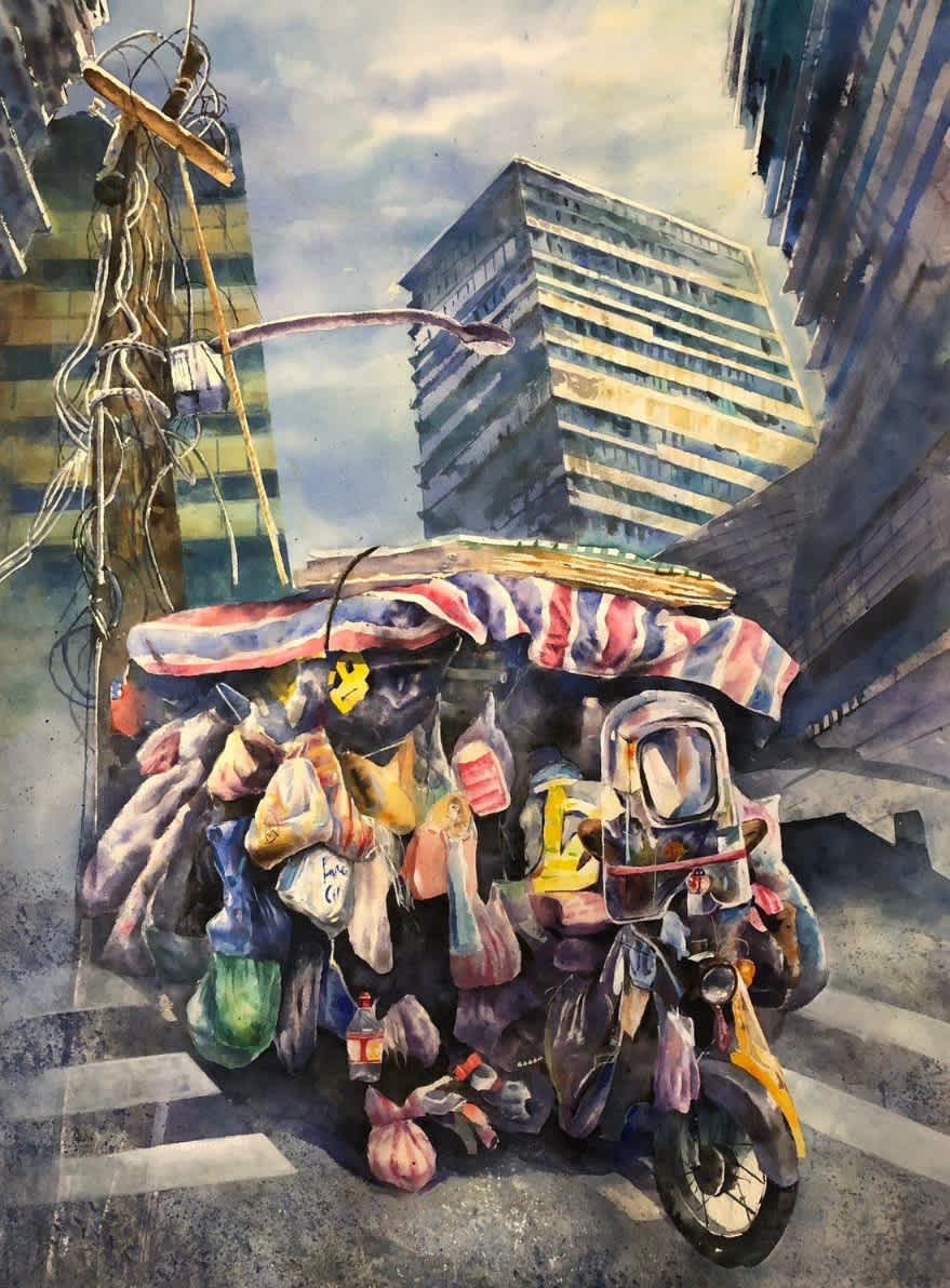 羅崇恩的創作則是在討論《貧窮》與《繁華》的反差,作品利用破舊不堪且堆滿回收物的車與背景中的高樓大廈,突顯一種意識上的反差。