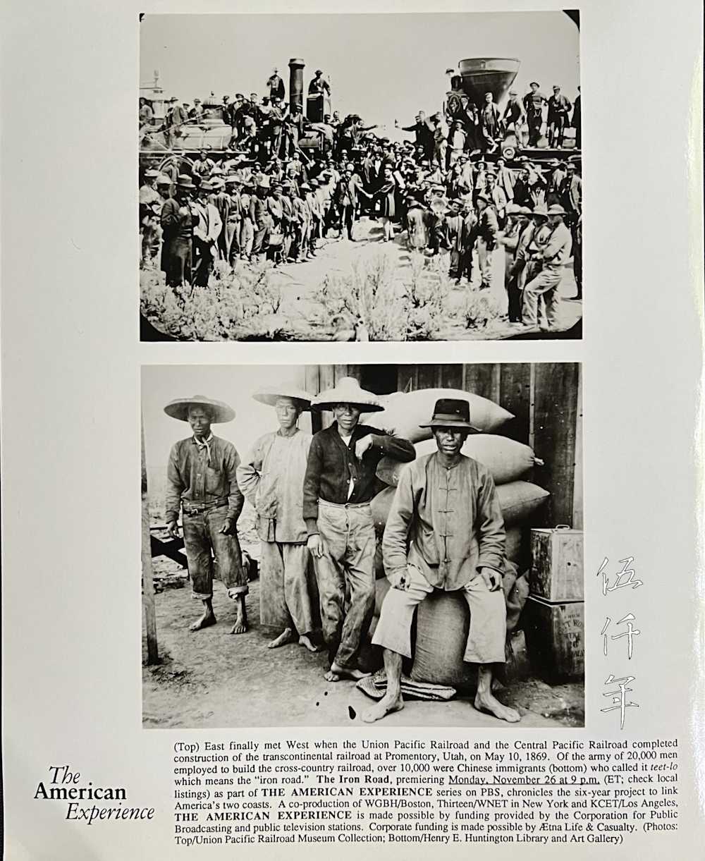 一八六九年五月十日美國東西部火車軌道連結成功華工留影,二萬築路工人一半以上皆華人
