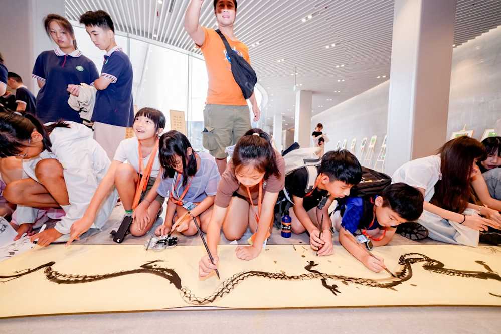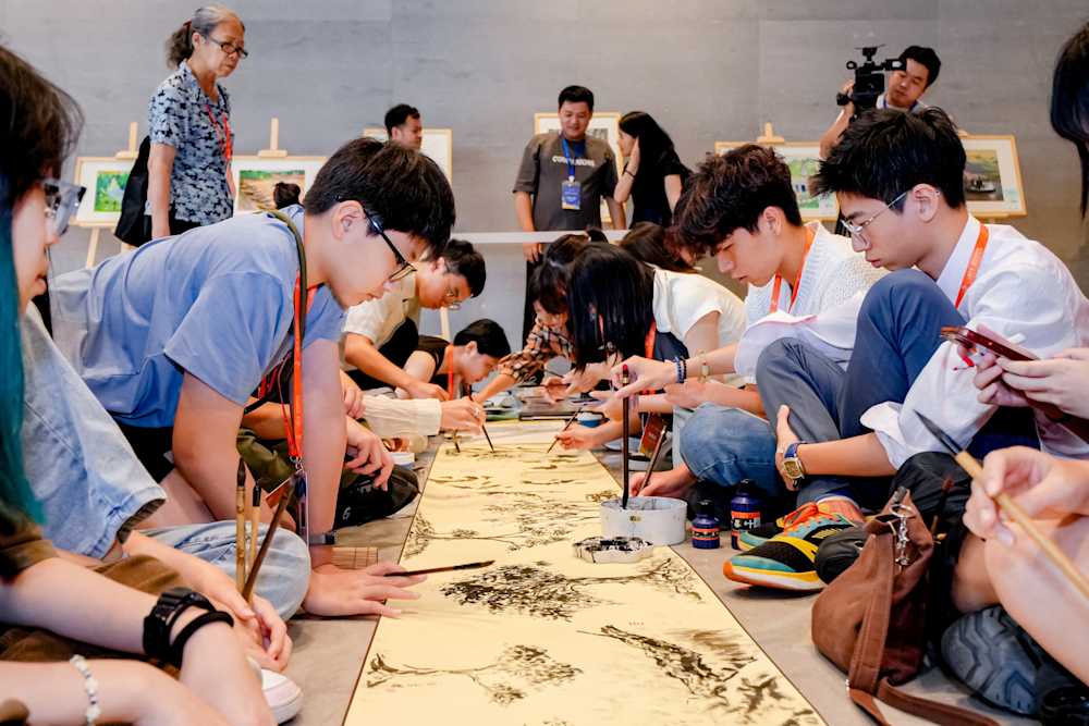 開幕式最後,兩岸青少年共繪長卷,他們揮舞著手中的畫筆,以“詩話長江”為主題,將腦海中的想像傾注於筆墨之間,花香鳥語、江河奔流、山水清音,皆融於畫面。