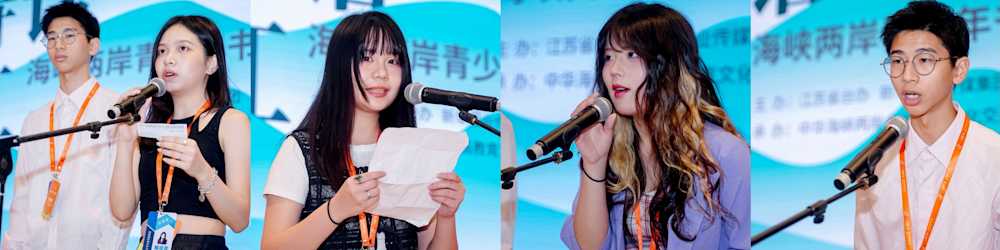 在蘇州舉行的「詩話長江」兩岸青少年書畫展上,來自台灣的蕭丞萱、王盈又、許薇婷、陳昱岱、楊禮徽、劉於綸同學帶來了充滿感情的詩朗誦《跟著李白游長江》。透過那些流傳千古的詩句,現場觀眾彷彿跨越千年的時光,跟隨意氣風發的青年李白,踏上波瀾壯闊的旅程。