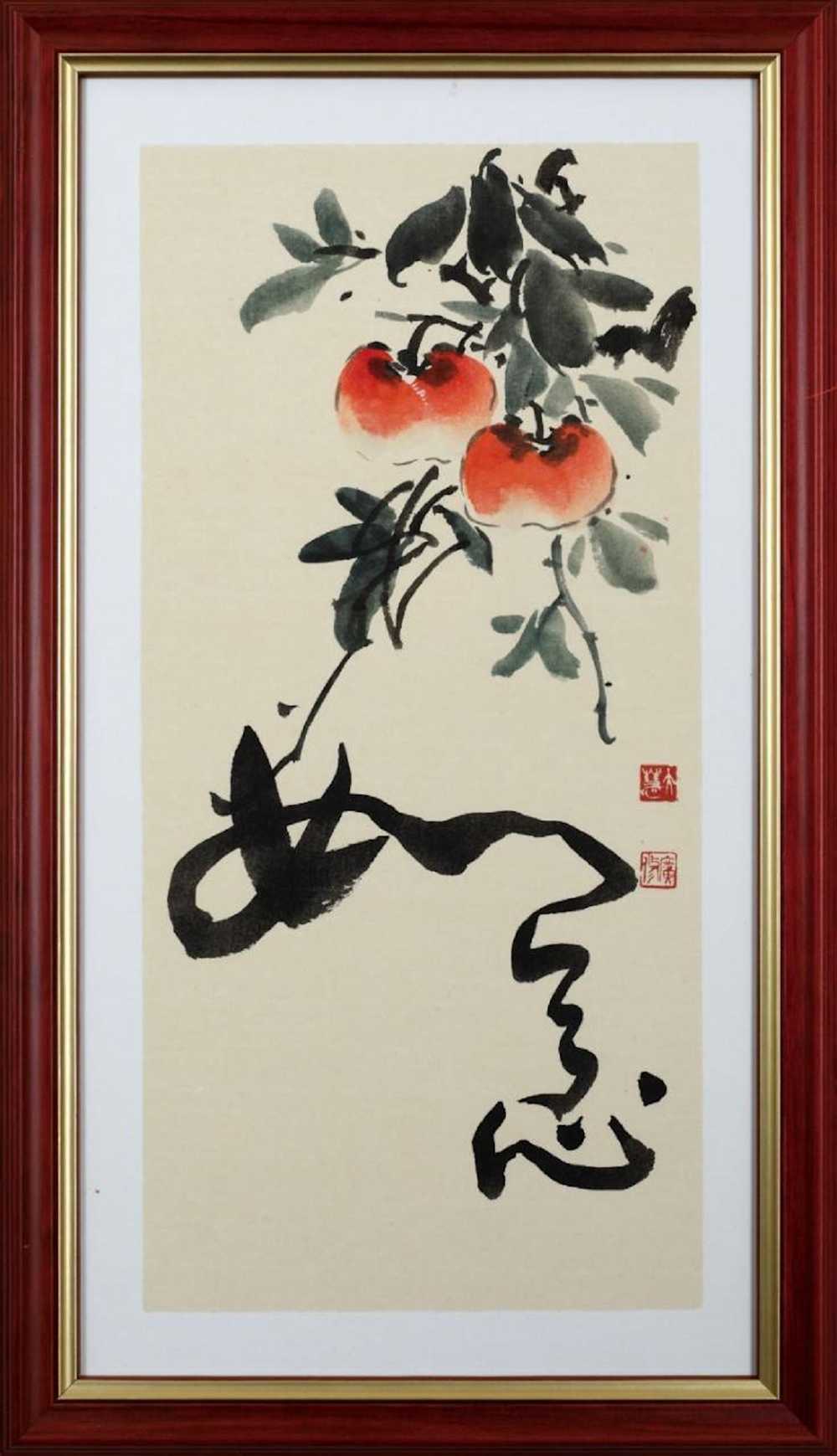 大慧法師作品之一「事事(柿)如意」畫作
