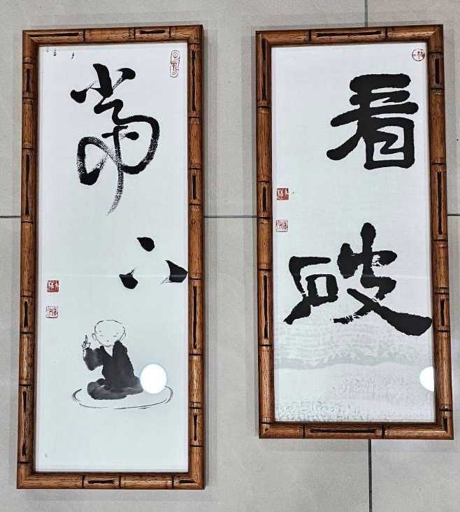 大慧法師表示,期待通過藝術的形式弘揚佛法,透過書法、繪畫、篆刻、歌唱、舞蹈、氣功、茶藝等多元跨界的方式,展現佛陀教法的智慧與正知見,讓更多人沐浴到佛法的美好。 大慧法師手作百件佛語與吉祥佳句書畫作品義賣